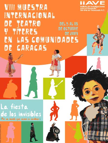 El Instituto de Investigaciones para el Desarrollo del Arte en Venezuela (IIAVE), realizará del 5 al 23 de octubre la VIII Muestra Internacional de Teatro y Títeres en las Comunidades de Caracas, la cual “Se ha consolidado como un canal de expresión para mostrar el trabajo artístico de nuestros creadores, 46 grupos nacionales e internacionales tendrán la oportunidad de intercambiar experiencias y saberes sobre el nuevo teatro en esta octava fiesta de los invisibles, que reúne comunidades, creadores y crítica especializada y que contribuye a la edificación del nuevo paradigma de creación y relación con el hecho cultural” declaró Alberto Ravara, director de la muestra. En esta edición ya han comprometido su participación agrupaciones teatrales de Argentina, Perú, México, Chile, España, Cuba y Venezuela.