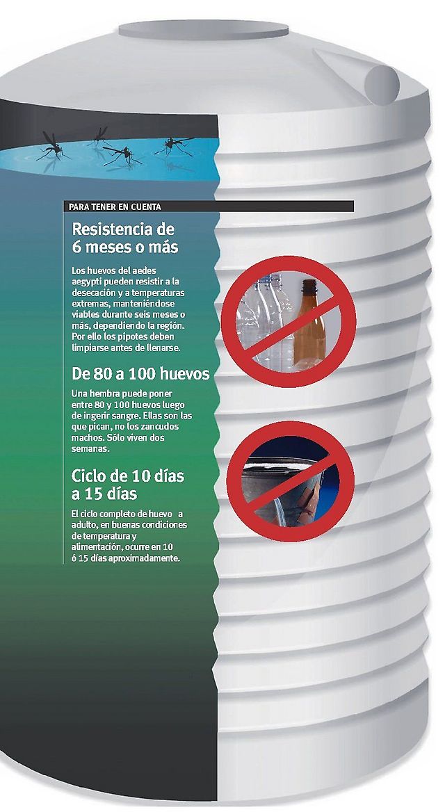 "Es una costumbre ir usando el tonel o barril y llenarlo cuando está casi vacío, sin lavarlo antes de agregarle agua. Luego de tener huevos o larvas dentro del tanque, si estuvo largo tiempo a cielo abierto y luego se coloca la tapa, igual seguirá formándose".