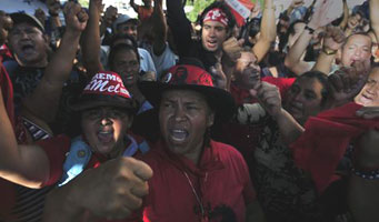 02 de diciembre 2009.- El Frente Nacional contra el Golpe de Estado en Honduras, que durante cinco meses ha exigido en las calles el retorno del orden institucional, anunció este miércoles que no reconocerá los resultados de los debates del Congreso Nacional de facto en torno a la restitución del presidente constitucional, Manuel Zelaya, por considerar que la sesión del órgano fue parte de un espectáculo.