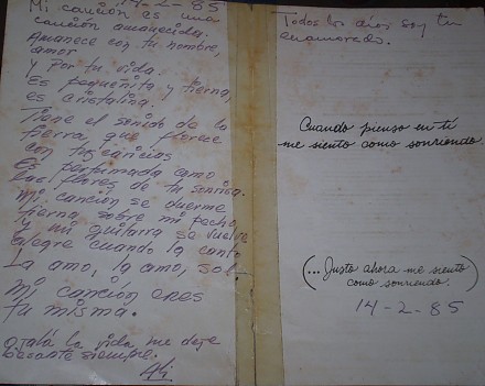 “Mientras cantaba, yo sentía una mirada muy fuerte y cuando me di cuenta era Alí. Me bastó verle la transparencia de sus ojos para darme cuenta de su calidad espiritual. A partir de ése entonces, en mi se despertaron los sentimientos más bellos.