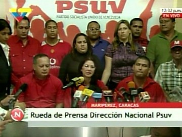 En rueda de prensa, desde la sede del partido rojo, en Maripérez, en compañía de la primera vicepresidenta del PSUV, Cilia Flores, y Diosdado Cabello, dirigente de esta organización política, entregó la comunicación soportada por las firmas de los más de 100 dirigentes de cuatro estados del país.