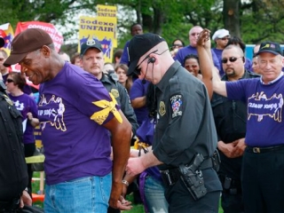 Maryland, abril 17 - El estadounidense Danny Glover, actor y activista, fue arrestado junto a otros 11 manifestantes cuando protestaban contra una cadena de comidas por sus condiciones laborales. Poco tiempo después recuperaron su libertad.