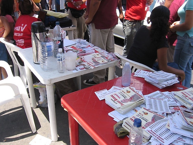 02 de mayo de 2010.- Hemos recibido denuncias de varias regiones del país donde se han detectado entrega de volantes y propaganda de algunos dirigentes nacionales y regionales del Partido Socialsita Unido de Venezuela (PSUV) a las puertas de diversos centros electorales.