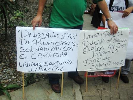 Tanto en la sede de la Defensoría del Pueblo, donde se concentraron inicialmente, como en la Fiscalía, a la que llegaron marchando por la Av. México, pidieron la inmediata liberación de Williams Sanguino y protestaron por su permanencia en prisión sin el debido proceso (más de 6 meses sin Audiencia Preliminar, sin habérsele imputado formalmente ningún delito y sin juicio). Al frente de las respectivas instituciones y en el trayecto de la movilización, los manifestantes gritaron consignas como: "¿Dónde está la Defensora que nos iba a ayudar? ¿Dónde está la Fiscal que nos iba a ayudar? ¡Libertad, libertad para Williams Sanguino! ¡Soy estudiante, soy radical, no jalo bolas burocracia judicial!" y muchas otras más.