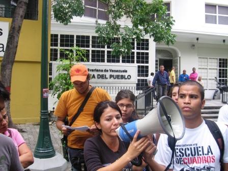 En la marcha caraqueña participaron estudiantes de la Misión Sucre y de UBV-Caracas, incluidos coordinadores de aldea, estudiantes de la UCV y miembros de organizaciones estudiantiles. Destacó la participación de un nutrido grupo de la Juventud de Marea Socialista y también se hicieron presentes miembros y dirigentes de Surco D P y el M 28, todos ellos militantes del PSUV y Juventud Rebelde, entre otras organizaciones. Acompañaron e informaron sobre la marcha medios comunitarios y alternativos, entre éstos, la Radio Alí Primera (El Valle-Caracas), Antiescuálidos.com, Prensa Marea Socialista y Aporrea.org. Igualmente marcharon (además de cubrir noticias) jóvenes comunicadores populares de Vive y de Avila TV, activistas populares de Catia, del 23 de Enero, El Valle-Coche y trabajadores de UNICASA, que además de hacerse solidarios pedían la libertad de uno de sus delegados de prevención, Carlos Jaramillo, detenido injustamente como resultado de una ofensiva patronal por vía judicial.