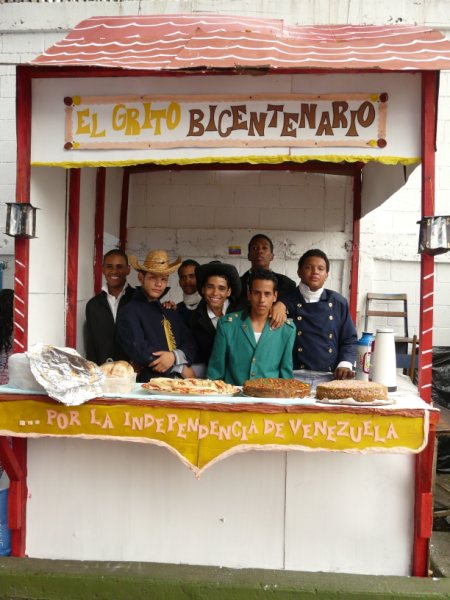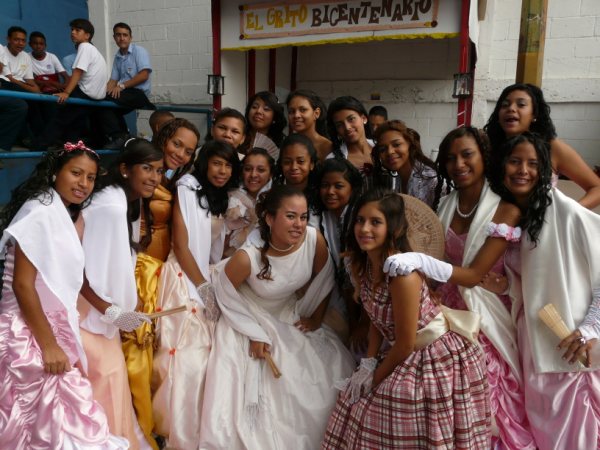 Cabe destacar el esfuerzo y excelente trabajo realizado por los Docentes en el área de Sociales en cuanto a la redacción de los guiones de la obra; preparación de los estudiantes y vestuario. Los personajes de la obra fueron dramatizados por estudiantes de los distintos años de nuestra institución. Jóvenes que demostraron una gran capacidad, motivación y disciplina al igual que los jóvenes de todas las secciones de 5to año quienes estuvieron encargados de presentar fachadas y comidas representativas de la época y cuyos vestuarios debían también, hacer referencia a la misma. Fue un hermosísimo evento que lleno de orgullo y regocijo los corazones de quienes estuvimos allí, al ver como nuestra Historia, nuestros Valores Patrios y nuestra Identidad Nacional eran resaltados por nuestros jóvenes.., sí!, esos jóvenes que normalmente son “presa” de la violencia y del reggaetón … Pero que el día del evento en medio de un ambiente amenizado con nuestra música folclórica y sin objeción alguna por parte de ninguno de ellos, pedían que se realizaran eventos como ese con más frecuencia. Sin el gran esfuerzo y la excelente participación de nuestros muchachos no hubiera sido posible el “banquete” que ese día nos dimos.... Algo curioso, que llamo la atención de los presentes y fue tomado como una Bendición de Dios al esfuerzo y trabajo realizado, fue la abrupta e inesperada lluvia que empezó a caer inmediatamente terminado el teatro y al final de una mañana muy soleada . Esta no impidió que el último baile se realizara y con mucha más energía y alegría el público se dispuso a bailar bajo la lluvia al ritmo de los tambores. Vaya también un reconocimiento super -especial: a esos padres que voluntariamente se integraron con sus hijos a este trabajo, ayudandolos a vestir, maquillandolos, ayudandolos a armar las fachadas desde el día anterior, y preparando los exquisitos platos ; a los docentes y estudiantes que trabajaron en la escenografía; y al gran voluntariado que se sintió motivado a aportar su granito de arena para el feliz desarrollo de esta exitosa actividad. En los liceos públicos frecuentemente se realizan actividades deportivas y culturales que ayuden a bajar los niveles de violencia en la que muchas veces se ven envueltos nuestros jóvenes y en esta oportunidad el "macroevento" realizado por la U.E.N Armando Castillo Plaza" no podía tener otro resultado que no fuera el éxito. Esto gracias a ese trabajo mancomunado, integrador, sin límite de tiempo, de mucha creatividad e iniciativa. DOCENTES, ESTUDIANTES, PADRES O REPRESENTANTES Y VOLUNTARIADO COMO ESTOS SON LOS QUE LA PATRIA DEMANDA, NO POR UN DIA SINO PARA SIEMPRE. Dos medios de comunicación uno público y uno privado fueron invitados a cubrir el evento, pero ningún representante asistió. Esto es parte del trabajo que estamos haciendo en nuestros liceos públicos venciendo limitaciones y dificultades,.. pero eso sí.., como dice nuestro Presidente cuando no promocionan o informan sobre las obras del gobierno... "SHSHSHSH QUE NADIE SE ENTERE!... Les envió contenido del programa y algunas fotos que dan muestra de lo que aquí les acabo de narrar ...