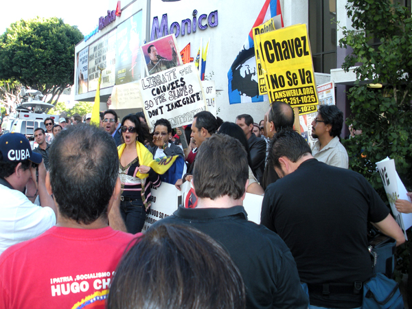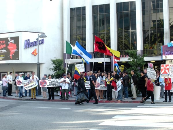 Apenas días antes del estreno, la actriz cubano-venezolana Maria Conchita Alonso, había convocado una protesta invitando además a los medios de comunicación para que presenciaran el "rechazo de la comunidad Venezolana y Latinoamericana en los Ángeles hacia el director Stone y su documental." Entre los argumentos que la actriz esgrimió fue que el documental es un “panfleto propagandista” que pretende engañar y mostrar una imagen positiva de Chávez”.