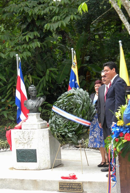 El encargado de negocios de la embajada venezolana en San José, Javier Gómez González, expresó la gran satisfacción del Gobierno Bolivariano que lidera el presidente Hugo Chávez Frías, por ese eterno homenaje que le rinde el pueblo costarricense en nuestro Libertador en esos espacios.