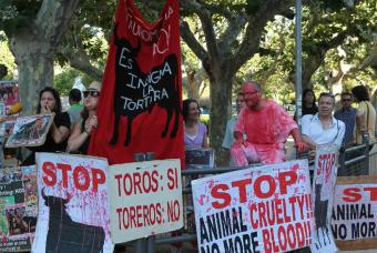 En las filas antitaurinas también había quien llamaba a no cantar victoria, aunque se escuchaba el cántico de "Barcelona antitaurina,oe oe, oe"."Seguiremos en las puertas de la plaza de toros porque la prohibición no entra en vigor hasta el próximo año", explicaba uno de los activistas. "Hasta que no se anule todo maltrato animal Cataluña no será Europa", dijo.