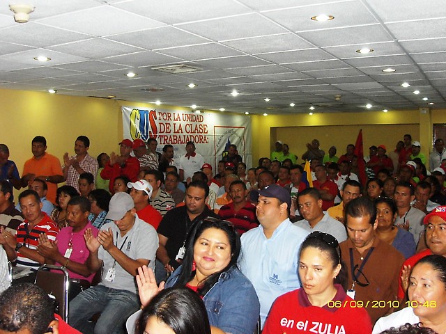 Después de una asamblea de trabajadores, en la cual participaron obreros y obreras del sector construcción, electricidad, transporte, educación, universidad y administración pública, los dirigentes sindicales del Zulia manifestaron su compromiso con el Estado obrerista que lidera el presidente Chávez.