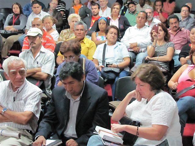 11 de octubre de 2010.- El día viernes 8 de octubre del 2010 a las 10:00 am, se dieron cita alrededor 95 personas en la sala Amabilis Cordero de la Biblioteca Nacional con la intención de participar en la charla “Nuestro socialismo: ni calco ni copia”, dictada por Marta Harnecker, escritora chilena e investigadora del Centro Internacional Miranda (CIM). Este es el título de uno de los tres libros de bolsillo recientemente bautizados en dicho recinto con la presencia del ministro de Cultura, Farruco Sesto, el lunes 4 del presente en la apertura de una exposición de toda su obra que permanecerá abierta durante un mes. Los otros dos llevan los títulos de: “¿Hacia dónde va América Latina?” y “¿Qué instrumento político necesitamos hoy?”
