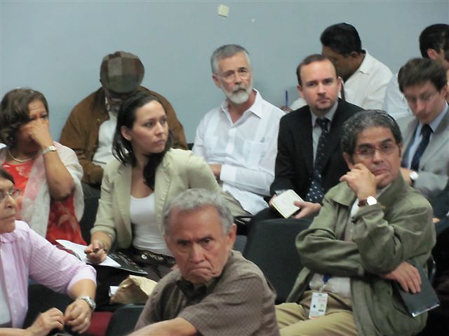 La charla se inició con la muestra de dos segmentos del material audiovisual que acompaña al texto impreso. Se trata de una filmación de más de siete horas, dividida en 36 segmentos de 10 minutos cada uno, seguidos de algunas preguntas que permiten reflexionar y discutir acerca del contenido pedagógico que se ha expuesto. La idea de la autora es que se puedan constituir grupos de estudio de diferente dimensión dependiendo de cada lugar concreto para estudiar y discutir este material. Esto se podría hacer simultáneamente en todo el país ya que este método no requiere de la presencia física de un profesor. Se trata de una muy efectiva metodología de socialización del conocimiento.