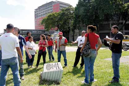 13/10/10.-La placa que desde hace años permanece en los jardines plaza Jorge Rodríguez, también conocida como “Tierra de Nadie”, en la Universidad Central de Venezuela (UCV), en honor a este luchador social de la izquierda revolucionaria, amaneció este martes ultrajada.