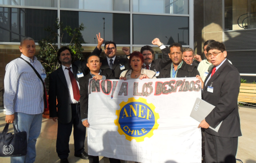 La delegación de la UNETE y la CUTV, presente en la 17ª Reunión Regional Americana de la OIT que se celebra en Santiago de Chile, se reunió con un grupo de trabajadores y dirigentes despedidos por el Gobierno de ese país, en el marco de una protesta que se realizó en las instalaciones de la sede de la mencionada reunión, que también acompañaron los dirigentes venezolanos.