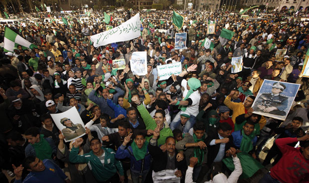 20 de febrero 2011.-Al menos mil 500 personas salieron a las calles de, Trípoli, la capital libia, la noche de este domingo a manifestar su rechazo al gobierno encabezado por Muamar Gadafi, según informó la cadena árabe de noticias Al Jazeera.