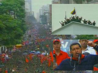 "A la Revolución Bolivariana no la tumban ni los sifrinos, ni la burguesía ni el imperialismo, ni nada, ni nadie", dijo Chávez, con voz ronca por la gripe, ante los venezolanos y venezolanas que en su mayoría marcharon coloreados de rojo, y colmaron con banderas, consignas y carteles la inmensa avenida caraqueña.