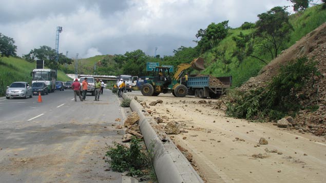 04 de julio 2011.-Para este martes prevén concluir la remoción del deslizamiento de 3.000 metros cúbicos de tierra que se produjo la noche del sábado en la carretera Local 11, en el estado Miranda, que enlaza Charallave y los Valles del Tuy con Caracas.