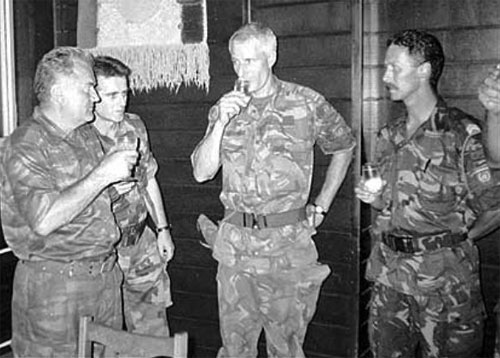 Una foto publicada en 1995 por el periódico holandés De Volkskrant, en la que se ve a Mladic y a Karremans charlando amistosamente y brindando con una copa en la mano, fue considerada como una muestra de la “complicidad” holandesa.