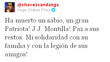 El presidente Chávez expresó pesar a través de su cuenta en Twitter: