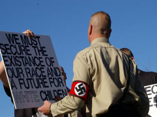 Naciones Arias es un grupo separatista blanco extremadamente anti-judío. Él insiste en que no tolera o fomenta cualquier acto de violencia. Pero llama a los judíos “los hijos de Satanás”.