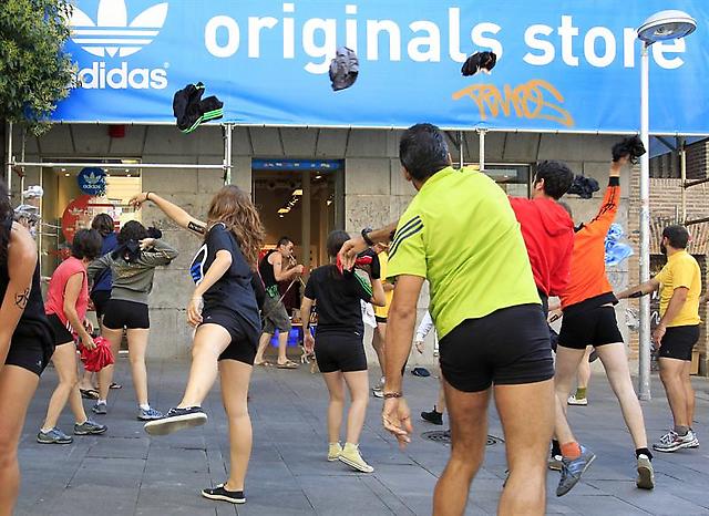 A la misma hora que jóvenes de otras ciudades del mundo bailaban mientras se quitaban ropa de estas marcas a modo de protesta, una treintena de voluntarios chinos hicieron lo propio en un centro comercial de las afueras de la capital.