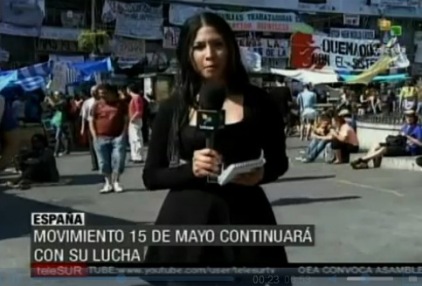 @Adelboyz: “Telesur el único canal que está cubriendo todas las movilizaciones populares de jóvenes en España alzando la voz por la crisis en ese país.”