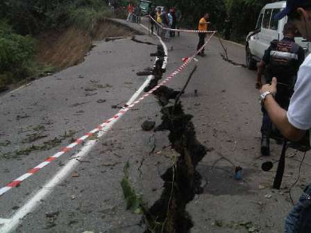 En la vía hacia Ocumare de la Costa se interrumpió el paso totalmente para proseguir con los trabajos en el kilómetro 8, debido al desplome de la mitad de la calzada, producto de una falla de borde.