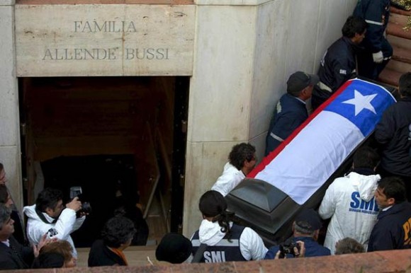 Los restos de Allende permanecían hasta entonces en una sepultura anónima del cementerio del balneario de Viña del Mar, adonde fueron trasladados secretamente al día siguiente del golpe militar encabezado por el ex dictador Augusto Pinochet.