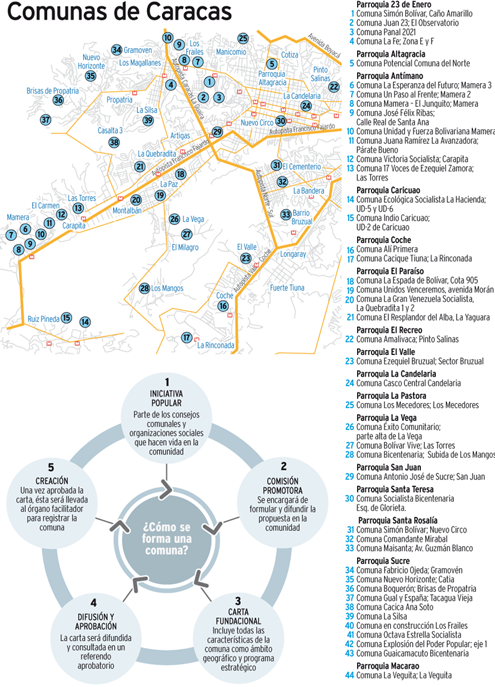 En este proceso la ciudad de Caracas se ha convertido en un espacio lleno de ejemplos de autogobierno. La organización comunal en Caracas representa 19% del total nacional.