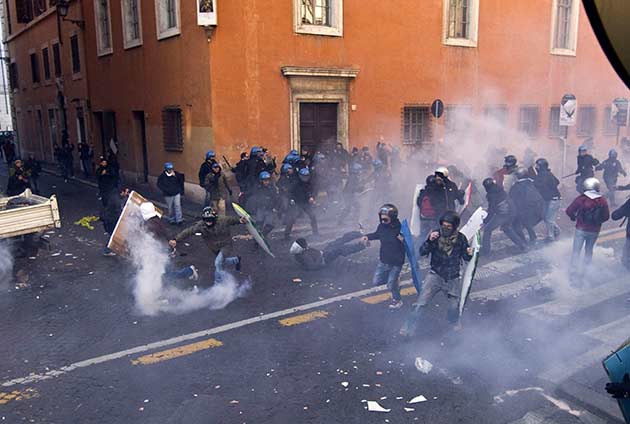 Tanto en Roma como Milán las marchas se desarrollan ante una fuerte presencia policial después de los altercados del año pasado.