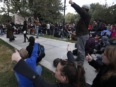 Las protestas vienen de lejos. Durante más de un mes integrantes del 'Occupy Wall Street' ha mantenido un campamento ocupado en Davis, pero el movimiento se trasladó esta semana a la Universidad de California. Después de la manifestación del martes, los estudiantes consiguieron dormir el miércoles en el campus universitario y acabaron por levantar tiendas de campaña el jueves por la mañana.