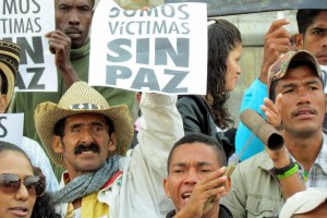 Una delegación de 83 desplazados de la finca Las Pavas, junto a otros campesinos y mineros del sur de Bolívar, el Movimiento Nacional de víctimas de Crímenes de Estado y defensores de derechos humanos, hizo presencia en la Plaza de Bolívar de Bogotá, el pasado 14 de diciembre, para exigir al gobierno que respete la verdad sobre el desplazamiento forzado que vivió esta comunidad en 2003, cuando los paramilitares reunieron a los pobladores para decirles que debían irse si no querían ser asesinados.