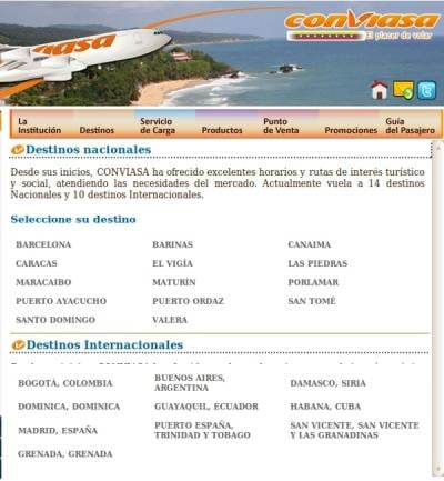 02/02/12.-El Consorcio Venezolano de Industrias Aeronáuticas y Servicios Aéreos S.A. (Conviasa), ajustó sus itinerarios de vuelo, tanto de los destinos nacionales como internacionales, desde este primero de febrero en aras de potenciar las operaciones comerciales y optimizar los servicios de transporte aéreo.