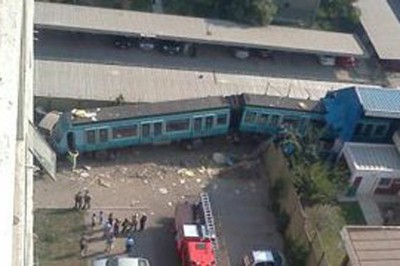 08/02/12.-Dos vagones de la empresa chilena Metro terminaron en un área de estacionamiento y juegos infantiles en Santiago (capital), luego que un tren se descarrilara cerca de las 10H00 locales (13H00 GMT) de este miércoles y derribara la pared de un edificio residencial. Tras el incidente no se reportaron heridos ni víctimas fatales.