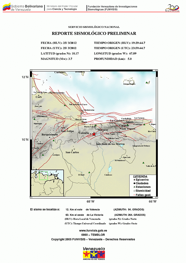 @FUNVISIS #Sismo:2012/03/25 19:29 (HLV), Mag. 3.7 Mw, a 12 Km al este de Valencia (10.172 N,-67.890 W), prof. 5.0 Km