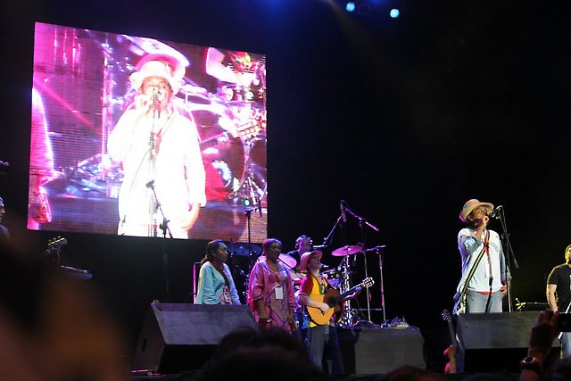 Antes del evento, fueron repartidos 5.000 volantes, en donde se informa sobre la problemática indígena, dentro y fuera del Estadio, mientras “los zulianos disfrutaban de la música de los grupos locales, El Pacto, Bituaya y Jahkogba, encargadas de animar previa presentación del músico”.