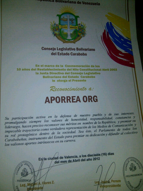 Valencia, 16 abr 2012.- En el marco de la conmemoración de los hechos acaecidos los días 11,12 y 13 de abril del año 2002, el Consejo Legislativo Bolivariano del Estado Carabobo realizó una Sesión Solemne, dónde fue designado el diputado Pedro Carreño como Orador de Orden, enalteciendo su labor, constancia lucha y compromiso revolucionario y en la que se hizo entrega de la Orden del Bicentenario; El alcalde del Municipio Puerto Cabello y jefe del comando de campaña en Carabobo Rafael Lacava fue el encargado de presentarlo.