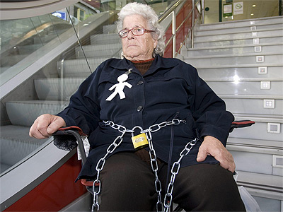 Abril 25 de 2012.-El Juzgado de Instrucción número 5 de Almería ha condenado a una mujer de 76 años que fue desahuciada el pasado diciembre de su vivienda de Níjar (Almería) al pago de una multa de 20 euros por una falta de coacciones por encadenarse a las puertas de una sucursal bancaria en la capital almeriense.