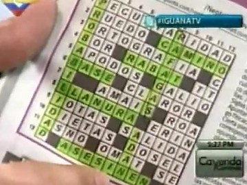 09/05/12.El filósofo y politólogo Miguel Pérez Pirela, moderador del programa Cayendo y Corriendo que transmite VTV mostró la tarde de este miércoles un crucigrama publicado por el diario Últimas Noticias donde presuntamente se encuentra un mensaje oculto que develaría un plan de asesinato contra el hermano del Presidente Hugo Chávez y gobernador del estado Barinas, Adán Chávez.