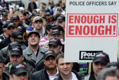 10/05/12.-La huelga de 24 horas de los empleados británicos del sector público ha conseguido el mejor de los apoyos. Unos 20.000 policías se han manifestado por el centro de Londres en protesta por los cambios del Gobierno en el sistema de pensiones que contempla aumentar las contribuciones y la edad de jubilación de 65 a 67 años para 2028.