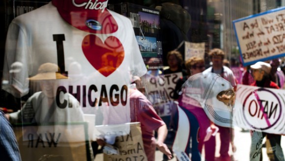 21/05/12.-En Chicago, sede de la cumbre más importante de la OTAN en sus seis décadas de historia, veteranos de las guerras en Iraq y Afganistán, así como miembros de la agrupación Afganos por la paz, encabezaron una marcha por la paz de miles de personas este domingo.