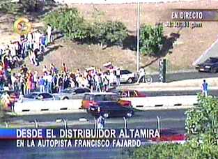 A las 4.44 pm, un grupo de carmoníacos que se devuelven de su marchita están comenzando a amenazar con tomar la autopista.