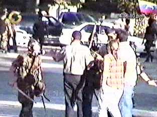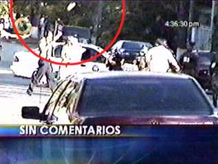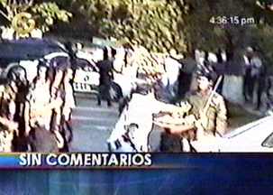 Se vuelve a cortar otra porción del vídeo. Continúan los forcejeos. Se ven algunos objetos contundentes cayendo sobre los funcionarios, pero hay que ver el vídeo cuadro a cuadro para notarlos.