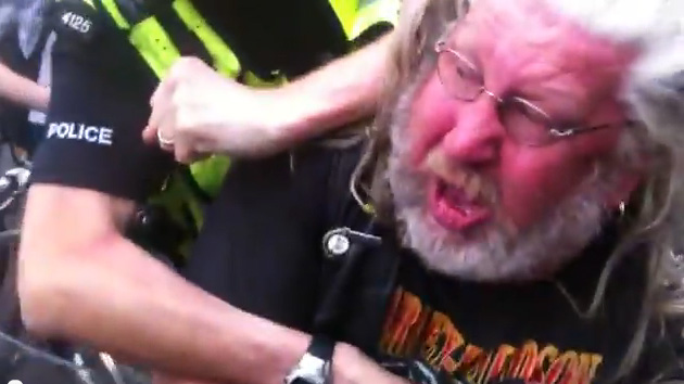 27/07/12.-La Policía lanzó gas pimienta, según usuarios de Twitter, contra ciclistas del movimiento ‘Masa crítica’ cerca del Estadio Olímpico de Londres, donde se lleva a cabo la ceremonia inaugural de las Olimpiadas 2012. Se produjeron arrestos masivos.