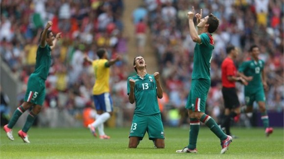11/08/12.-La selección mexicana de fútbol dió una de las sorpresas de esta penúltima jornada de los Juegos Olímpicos al derrotar dos goles por uno a su similar de Brasil en choque disputado en el nuevo estadio de Wembley.