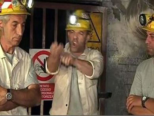 30/08/12.-Stefano Melett, un minero italiano de 49 años de edad, intentó cortarse las venas en un momento de desesperación, durante una rueda de prensa en señal de protesta por el posible cierre de la mina donde trabaja en la isla de Cerdeña.