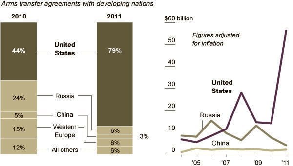 Simultáneamente el verano boreal de 2012 imprimirá una mayor aceleración a la desarticulación geopolítica mundial con el conflicto sirio que cada día es más peligroso para el Medio Oriente y el mundo (3), la tensión israelí-iraní lista para explotar en cualquier momento y una prueba generalizada del poder estadounidense declinante – desde el Mar de China a la América Latina pasando por el todo el mundo musulmán. El mundo estratégico-militar está recalentado al rojo vivo como lo muestra, por otra parte, la masiva reanudación de la venta de armas al nivel mundial, con Estados Unidos proveyendo el 85% del total (4).