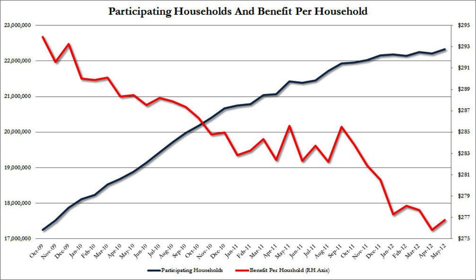 Evolución del número de familias que participa en el programa de los Bonos Alimentarios (Food Stamps)