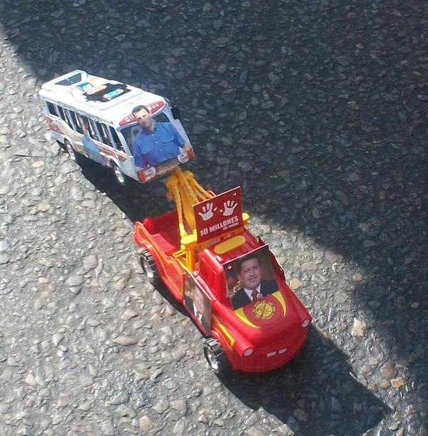 Buenos días Venezuela, como tenemos el mismo presidente, urgentemente están reprogramando el satélite Miranda, para que ubique el Autobús del Progreso, perdido con unos terrícolas adentro.