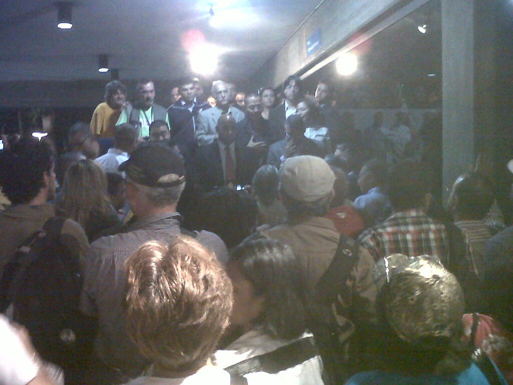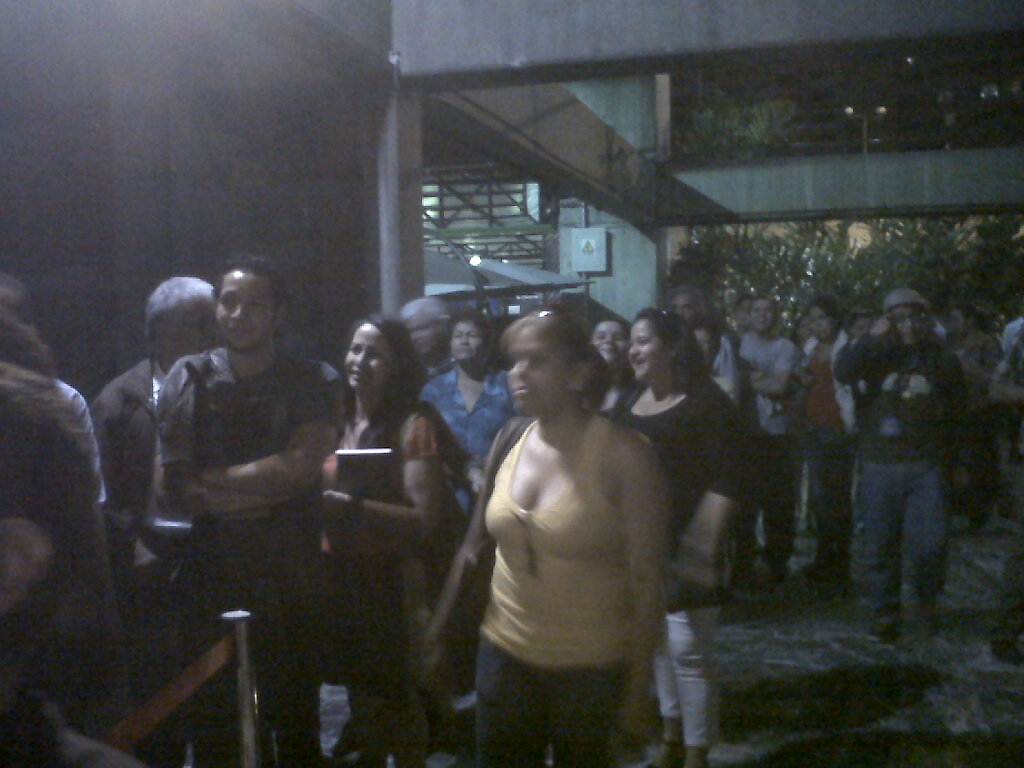 Una larga cola se instaló en las afueras del Teresa Carreño desde temprano y por lo menos la mitad de la gente se quedó sin asiento, a pesar de que el espacio tiene capacidad para unas 350 personas. Ernesto Villegas salió al encuentro del público y amablemente ofreció excusas por la insuficiencia del recinto.